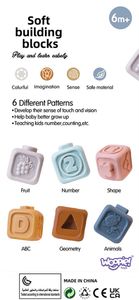 WOOPIE BABY Zestaw Edukacyjna Piramidka Klocki Sensoryczne 2w1 to kolorowa zabawka rozwijająca zdolności manualne i poznawcze malucha. Zestaw zawiera miękkie klocki z cyferkami, które pełnią także funkcję gryzaka, wspierając naukę liczenia, rozpoznawanie kształtów i koordynację ruchową. Idealny wybór do zabawy i nauki w jednym.